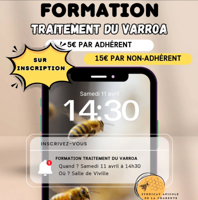 Le samedi 11 avril, de 14h30 à 17h, votre Syndicat apicole vous propose une formation consacrée au Varroa et aux moyens de lutte contre ce parasite, l’un des principaux ennemis des colonies d’abeilles. Cette rencontre sera l’occasion de mieux comprendre…